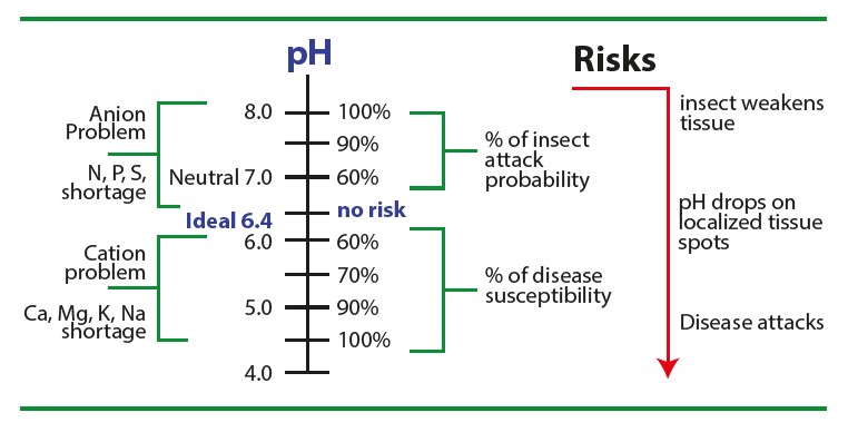 The use of the Horiba LAQUAtwin pH meter to ensure an optimal pH of 6.4 in plant tissue will encourage healthy plant growth and prevent insects and diseases attacking the plant.