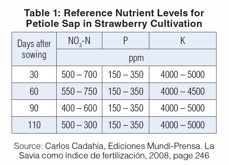 Plant sap analysis provides information on the current nutritional status of the plant. This information makes it possible to fine-tune N application, to maximize yield and quality, and to extend the fruiting season. The plant sap analysis complements soil solution analysis.